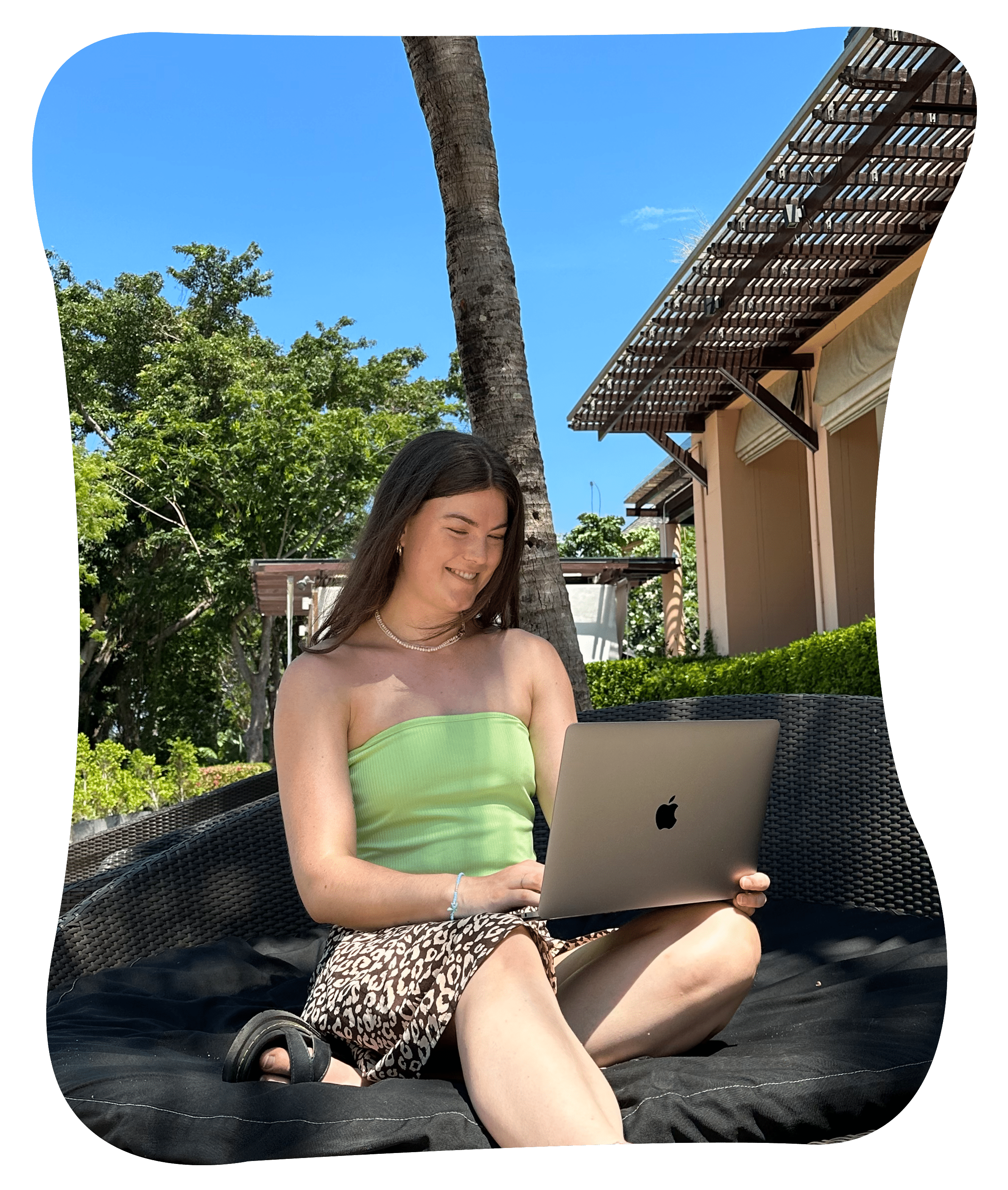 I started this business while still begin a full time student, because I knew I was ment for more in life & that I needed to change something to actually change my situation instead of staying stuck in the same routine. After combining my bachelor and business for 1,5 years, I graduated and started to enjoy the digital nomad lifestyle.
